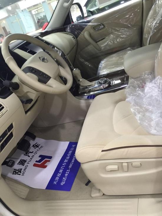 日产尼桑途乐Y62越野4.0L中东版内饰兼具了舒服性和功效性。依然为三排座车型,内饰材质也越发的讲求, 行使了皮革,铝以及木纹样条作为点缀,以淡色调为主,营造出了轻松舒服的驾驶情况。