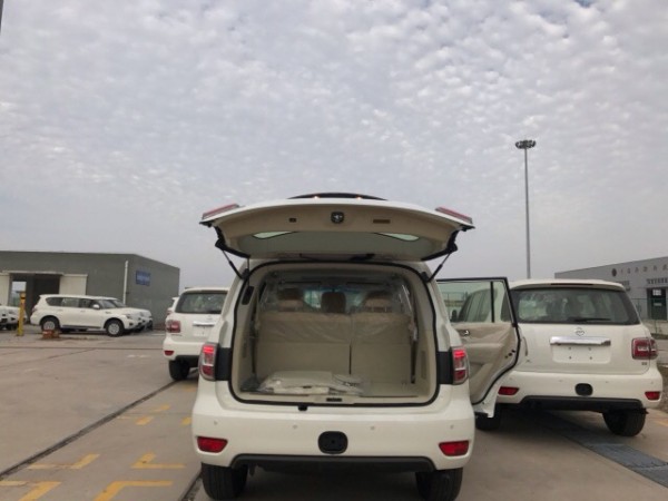 日产途乐Y62新车前脸冲击感强,中网面积占据了整个前脸,并加上了镀铬装饰,营造出了日产家族式前脸。尾部装配了单边共两出的排气系统以及全新造型的锻造铝合金轮圈,整车风格更加运动。