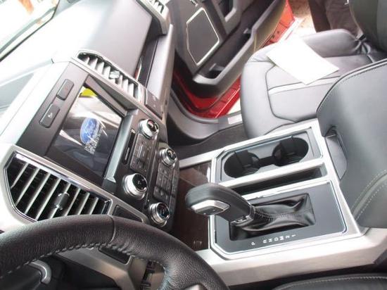 内饰方面:17款福特F150采用带电冷热功能的可记忆式皮革座椅,头枕四向可调,搭配铝饰条和黑色钢琴烤漆内饰。六指针仪表盘的设计有些后工业时代的复古风格。采用广受好评的SYNC通信和娱乐系统,允许免提声控驾驶员移动设备和音响系统。颜色搭配很让人兴奋,操作也同样便利。17款福特猛禽F150墨版采用带电冷热功能的可记忆式皮革座椅,头枕四向可调,搭配铝饰条和黑色钢琴烤漆内饰