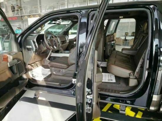福特猛禽配置:20轮、密码锁、智能卡、电踏、并道辅助、方向盘电动调节、前座椅通风、环影、全景天窗、前后座椅加热、后梯子17款福特猛禽F150国王牧场版配备标准独特的皮革的座椅,驾驶员侧的电动调节。这些座椅同时具备记忆功能。液晶屏驾驶员的程序配置包括:行车电脑、燃油经济性和拖车系统、越野应用菜单等。