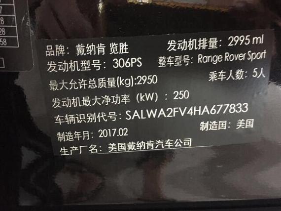 [天津最新行情]近日,在天津佳世鹏程国际贸易有限公司-滨海店了解到2017款路虎揽胜 (配置|询价)运动S汽油版现车优惠促销,展位实拍图片,配置颜色齐全,全国可上牌,可分期付款,手续符合全国上牌标准。 配置丰富手续正规,更多优惠信息请致电商家,为您提供最新最快的行情。