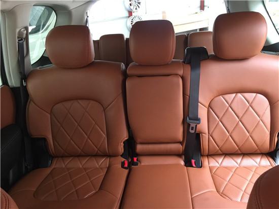 座椅方面:17款尼桑途乐4.0XE内饰兼具了舒适性和功能性。仍旧为三排座车型,内饰材质也更加的讲求,利用了皮革,铝以及木纹样条作为粉饰。中控部门的设计比较具有豪华感,尺度日系豪华车的气概,BOSE音响是许多中高端车所选用的,音响效果不会让你失望。