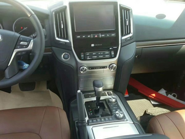 这款丰田酷路泽5700整个操控区域色调为深色系,仪表盘、方向盘位置均配以桃木装 点,尽显豪华质感。不但具有DVD导航,这款车的倒车影像还可以显示在内后视镜上;中央扶手箱还装 备了冷藏箱,这些都与中规版车型有所不同。