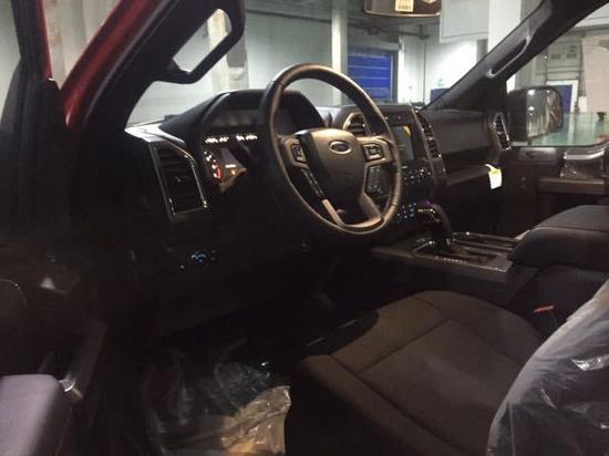 内饰方面:17款福特F150采用带电冷热功能的可记忆式皮革座椅,头枕四向可调,搭配铝饰条和黑色钢琴烤漆内饰。六指针仪表盘的设计有些后工业时代的复古风格。采用广受好评的SYNC通信和娱乐系统,允许免提声控驾驶员移动设备和音响系统。颜色搭配很让人兴奋,操作也同样便利。17款福特猛禽F150墨版采用带电冷热功能的可记忆式皮革座椅,头枕四向可调,搭配铝饰条和黑色钢琴烤漆内饰
