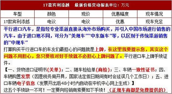 免责声明:以上购车优惠信息由本网综合经销商提供,由于行情因素价格浮动较大,仅供购车参考;其真实性、准确性及合法性由经销商负责,本网站不提供任何保证,亦不承担任何法律责任。