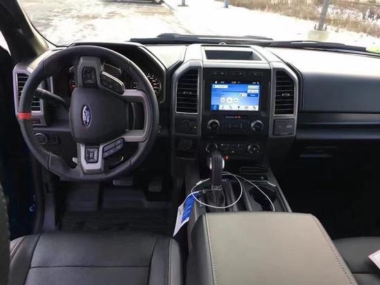 2017款福特猛禽F150皮卡的内饰延续了老款车型的整体设计,不过新车的方向盘造型有所调整,并增加了多功能控制按键与方向盘换挡拨片。另外,福特2017款F-150猛禽配备全新的地形管理系统,拥有标准、街道、雨雪、砂石、岩石等道路模式选项。