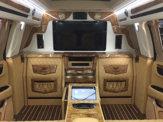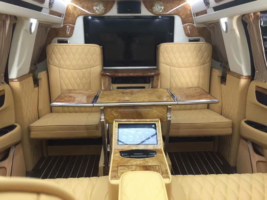 前后舱阅读灯 前后独立控制对讲电话 中间电动私密升降分隔屏 220V电源预留插头 32寸高清LED超薄液晶电视 电视可以通过网线网络上网 迈巴赫豪华真皮头等舱座椅 座椅按摩加热及电动调节褪托 柚木地板 卫星收音机,音量带速度感应调整 后舱7彩16色LED灯饰 电动可升级办公桌板 后舱预留游戏机及电脑接口 防弹后尾门 电脑NGA接口/车载电脑win7
