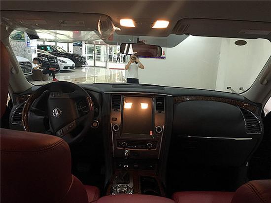 2017款日产尼桑途乐Y62庞大的身躯给人极大视觉冲击力,活脱脱的一台英菲尼迪QX56,中网面积占据了整个前脸,并加上了镀铬装饰,四活塞卡钳高性能制动系统,大大提升了途乐的安全性能。内饰不像外观那样霸气,稍作收敛,仪表盘采用传统的设计,中间的液晶屏幕可以显示常用的行车信息。改装真皮座椅,提升舒适性和豪华性。方向盘采用了豪华轿车惯用的四幅方向盘,手感极佳。