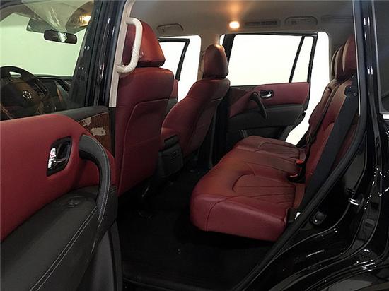 2017款日产尼桑途乐Y62全尺寸SUV,前两排乘客完全不用担心乘坐空间,第二排空间非常宽裕,座椅的椅背角度可以调节,无论是头部还是腿部空间都很宽裕,尤其腿部空间十分惊人。全新的四轮驱动系统拥有四种行驶模式(沙地、公路、岩石、雪地)可供选择。
