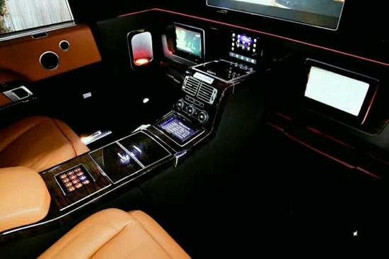 路虎揽胜皇家一号加长版配备了BOSE5.1殿堂级影院系统,喝酒K歌绝对毫无压力。后排配备有鞋托,车内底板全部为豪华游艇木装饰。由于是4座的设计,所以说后备箱腾出了比较大的空间,说到底,加长路虎揽胜皇家一号,还是一个豪华商务越野车,最主要的功能设计都安排在了后排路虎加长版皇家一号采用V8发动机,5.0升机械增压涡轮发动机,车采用22英寸的轮毂。发动机前置4轮驱动,带空气悬挂。