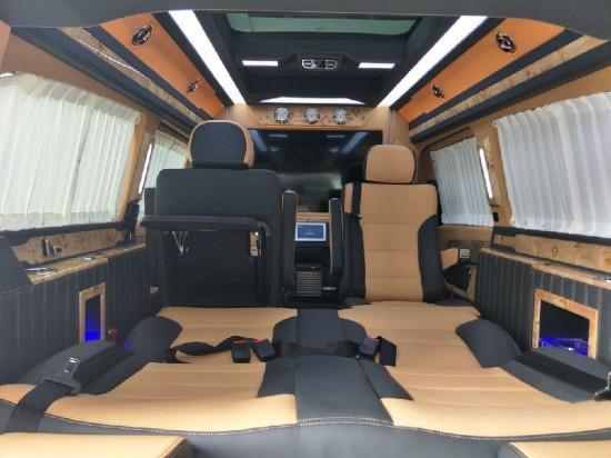 奔驰威霆从隔断方式来看,喜欢私密性高的,可以选择驾驶舱与贵宾区用升降液晶电视隔断,前后舱交流需求大的,可旋转未隔断化改装,也可选择带豪华吧台半隔断形式。