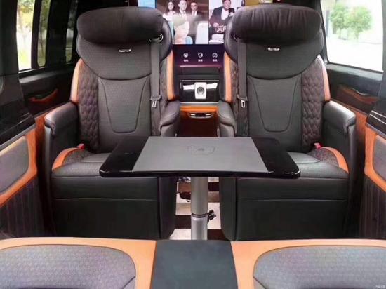 17款奔驰劳伦士整车座椅采用进口Nappa真皮包裹,电动调节总能让您找到舒适的坐姿,大尺寸触摸屏,配有倒影、后雷达;更有大容量冰箱,安全性,便利性都有保障; 2+2+3座椅排列,也是当前商务车最为流行的设计,二排独立航空座椅,打孔真皮处理更透气,座椅通风、按摩给予您更舒适的乘坐感受,更有360度旋转功能; 无论是照顾孩子、陪家人聊天,亦或是商务洽谈,都能让您随心所欲;此外第三排座椅展开,即可形成一张宽大舒适的沙发床!