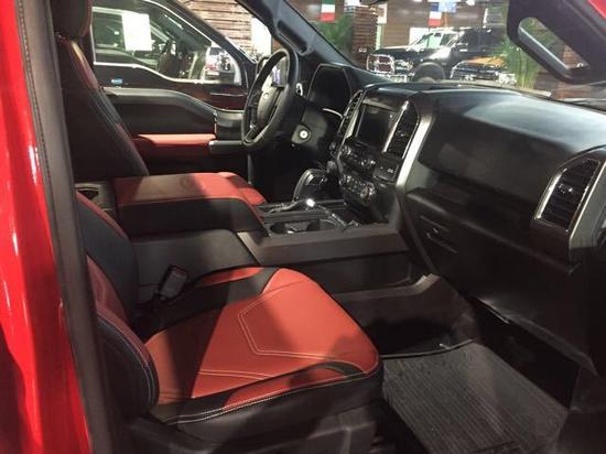 福特猛禽F150加版豪华包座椅定制,且具备了越野车更高的防震能力。内饰采用独特的中控台和门饰板面漆和真皮包裹的方向盘。驾驶舱空间宽广,福特猛禽F150正副驾驶席中间布置了一个巨大的手枕。