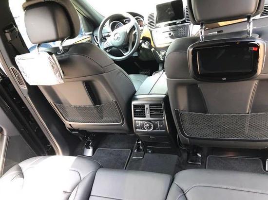 硕大的身材带来享受般的充裕乘坐空间,车内还配备了多项高科技装备和娱乐设施。采用真皮包裹的方向盘整体握感属于上层,车内被皮革、木料以及亚光金属所包围。多媒体液晶显示屏改为悬浮式造型,并且用全新造型的三幅式方向盘取代了GL级SUV使用的四幅式方向盘,这些设计方面的改变让全新GLS SUV给人的感觉更加年轻化。
