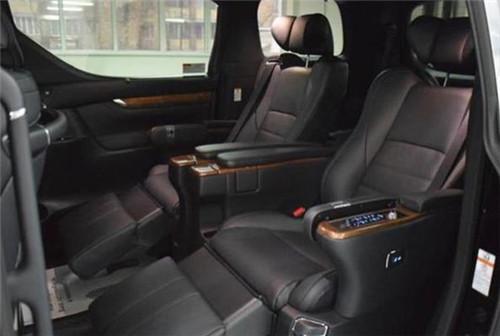 内饰方面:内饰用豪华大气的风格,中控台以皮革包裹搭配,朴实的桃木内饰,简单的方向盘延续丰田的风格。6档手自一体。让驾驶更加方便简洁。新款埃尔法第二排每个座位都拥有500*500的大小,并配备了独立的小左边,细腻的真皮扶手,和可调节头枕护翼。大气,舒适。独立的扶手控制台,单独的空调控制,2组代记忆的座椅可加热、通风。和侧方位阅读灯。超大天窗0.46平米,16色氛围灯,吸顶DVD。内饰更加豪华/质感依旧出众。