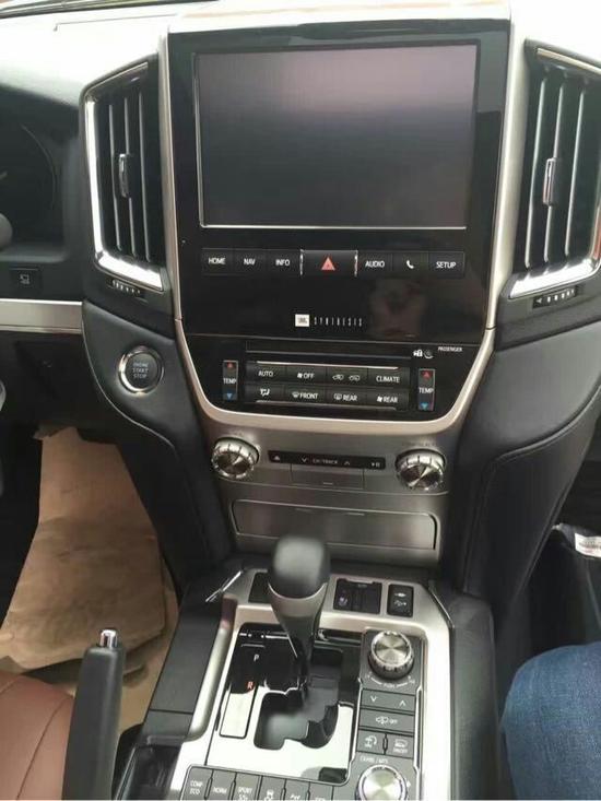 内饰方面:丰田酷路泽5700整个操控区域色调为深色系,仪表盘、方向盘和排挡等位置均配以桃木装 点,尽显豪华质感。不但具有DVD导航,这款车的倒车影像还可以显示在内后视镜上;中央扶手箱还装 备了冷藏箱,这些都与中规版车型有所不同。