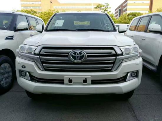 2017款丰田兰德酷路泽4000GXR,大灯清洗版 配置:电动天窗,双油箱,底挂备胎,七座,金属漆,两气囊,主驾驶电动座椅,中央差速锁,丝绒座椅,桃木内饰,桃木多功能方向盘,冰箱,智能卡,一键式启动,巡航,小屏,氛围灯,自动空调,蓝牙,电动折叠后视镜,坡道辅助,大灯清洗,氙气大灯,LED日间行车灯,18寸轮毂,踏板, 5速,拖钩,雾灯,彩条,车门防撞条,镀洛中网,弯道辅助,防炫目后视镜,烟灰缸, 蠕行系统,胎压监测。