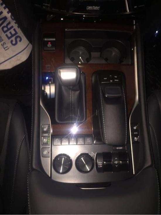 内饰方面:17款雷克萨斯LX570中规八座多功能桃木方向盘方便了驾驶员的操控,车内上深下浅的新色系搭配,让整个车内相比老款 车型温馨的不少。特别是桃木饰条的加入使得车内看起来更“丰田”,也提升整车豪华氛围。17款雷克萨斯LX570中规八座在中控台 的面板换成与内饰新色系更搭的黑色钢琴烤漆材质,真皮座椅与桃木内饰的搭配使整个车内更显高贵。