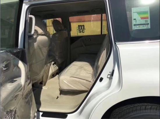 尼桑2017款途乐Y62越野 4.0L 中东版SE:7速自档 7座 BOSE音响 11个扬声器 氙灯 LED灯 前后电眼 冰箱 倒影 脚踏 主驾驶座椅电动调节 隐藏式大灯清洗 拖车钩 电动天窗 智能卡 一键式启动 镀铬套件 彩色显示屏 后差 电动后尾门 桃木内饰 防水防火丝绒座椅 400米遥控启动 油箱(140) 底挂备胎 电动助力方向盘 巡航 四种陆地模式 防侧滑 下坡辅助 CD 18合金轮 警报器 后雨刷 56.7万