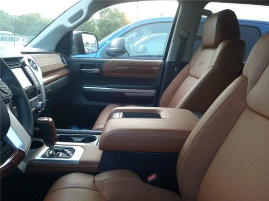 2017款丰田坦途1794版加版5米8的长度,这样的尺寸坦途不仅在公路上能独当一面的风光,在停车位上可能也得需要额外的照顾。 内部装饰更接近SUV车型,木质的应用让这辆卡车拥有了几份细腻典雅的感觉。