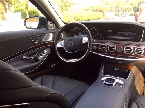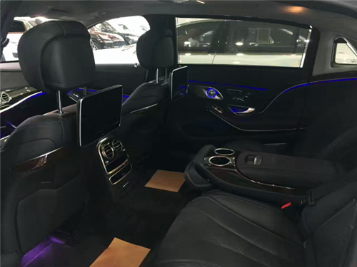 16款迈巴赫S600 单选:原厂奔驰AMG熏黑套件$6245(AMG定制熏黑20轮、紫色卡钳、AMG黑色logo、黑色车身格栅、黑色窗口、黑色隐私玻璃、熏黑漆)轮毂锁、黑色Nappa真皮内顶, 标配:胡桃木内饰、木饰皮饰多功能方向盘,车内氛围灯,可调光式全景天窗,抬头显示,夜视系统,液晶仪表盘,AIRMATIC空气悬挂,MAGIC车身控制系统,环车影像及自动泊车系统,THERMOTRONIC自动四区空调系统,智能卡,车内空气调节组件,多轮廓前后座椅通风加热按摩带记忆,行政四座,后排腿部支撑,后排折叠桌,后排冷热杯架,后排娱乐系统,遥控器,迈巴赫照明门槛,COMMAND Oline导航,车载wifi,COMMAND触摸控制器,Burmester柏林之声环绕音响系统(590瓦13扬声器带输出放大器),11气囊,BASE PLUS自动刹车辅助,盲点辅助,并道辅助,DISTRONIC PLUS雷达测距自适应巡航,PRE-SAFE主动刹车辅助,PRE-SAFE PLUS防追尾主动刹车辅助,LED智能灯光(自适应远近光调节、随动转向、增强型雾灯),ECO自动启停。