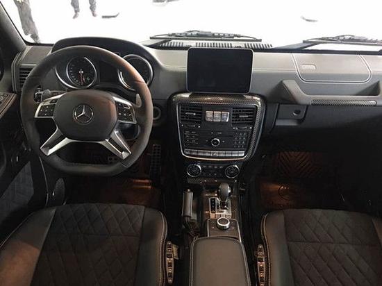 2017款奔驰G500 4*4内饰采用黑色真皮运动座椅,后排座椅可以任意折叠,折叠后,可得到更宽敞的储物空间。奔驰G550实用性为导向的车身线条比例匀称,清晰地勾勒出奔驰G500硬朗的外形气质。