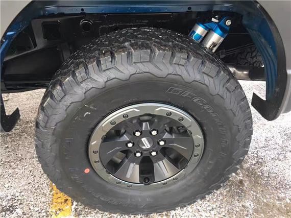 动力方面:2017款福特猛禽F150最新的轮毂是把可靠的传统轮毂和防脱圈的轮毂结合起来了。这款防脱圈轮毂可以保证在轮胎气压较低的情况下,轮胎不会脱离轮毂,因为我们去沙漠的时候往往要降低胎压。猛禽的轮毂最为独特,因为它从传统轮毂转换到防托圈只需要客户拔去标准螺栓,从其常规位置卸下轮胎然后从可锁位置重新安装轮胎,再装防脱圈螺栓。