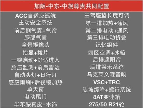 着急提车,不想等,怎么办?可以选择平行进口版。平行进口版LX570,都是现车,又或者在途车,目前有两个地区版本:中东版和加拿大版。