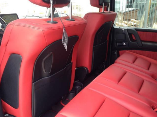 内饰方面:17款奔驰G550美规内饰采用黑色真皮运动座椅,后排座椅可以任意折叠,折叠后,可得到更宽敞的储物空间。奔驰G550实用性为导向的车身线条比例匀称,清晰地勾勒出奔驰G500硬朗的外形气质。