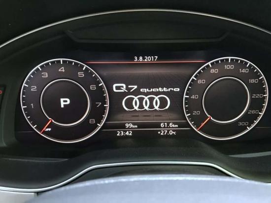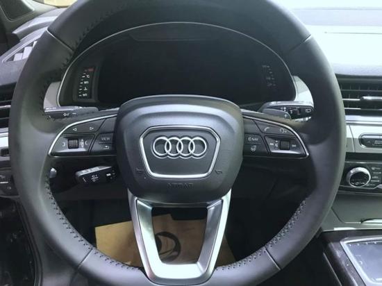 17款奥迪Q7内饰是最大的亮点就是带有真皮,电动座椅,多功能方向盘带有换挡拨片!材质高档、做工精细,真皮座椅和方向盘、木纹装饰的点缀都体现出了低调的豪华感。多功能方向盘在中央区块采用更多圆形线条设计,整体看起来更小巧,手感也更加。