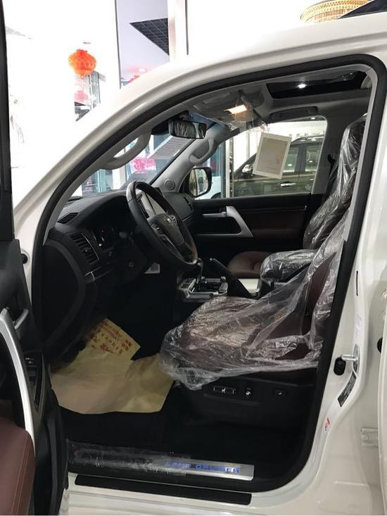 配置:17款酷路泽5700 白棕 VXR 《底挂顶配》 天窗,八座,真皮座椅,座椅通风,12气囊,底盘升降,360度环影,雷达测距,蠕行系统,并道辅助,车道保持,八速变速箱,双差速,桃木内饰,桃木方向盘,20轮,氙气大灯,全车镀铬,四门智能卡,前小杠,小尾翼,前后电眼,后视镜折叠,冰箱,后排娱乐,行李架,脚踏,电尾门 。