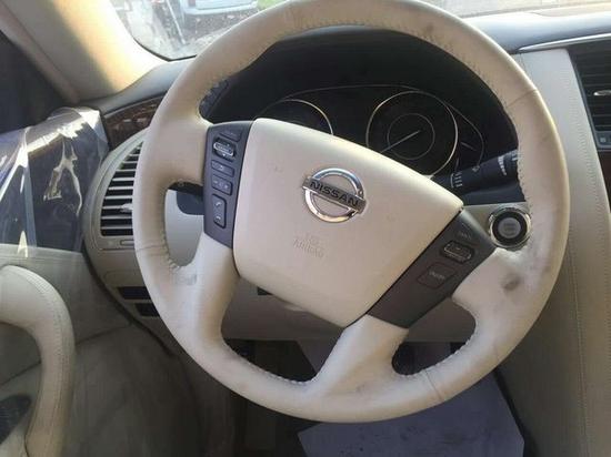 17款日产尼桑途乐4.0XE版内饰风格任然延续了日产家居化的设计,以浅色调为主,中控部分的设计比较具有豪华感,标准日系豪华车的风格,BOSE音响是很多中高端车所选用的,音响效果不会让你失望。方向盘为电动调节,左侧有很多控制键,比如大灯清洗、反光镜调节等等。另外我们意外发现途乐采用了4活塞卡钳高性能前制动系统,大大提升了最新款日产尼桑途乐的安全性能。