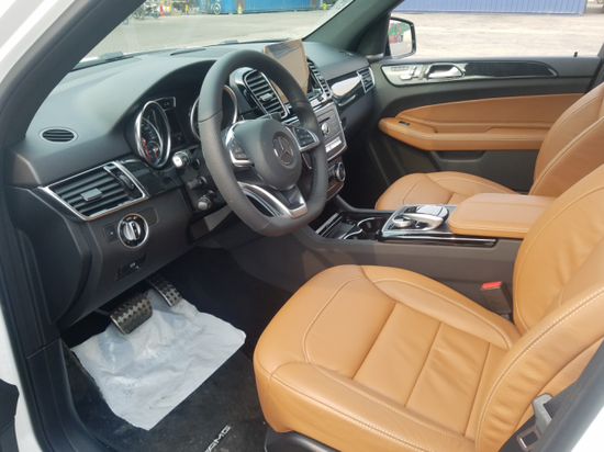 奔驰GLE43的内饰配备了实木/皮革组合的多功能方向盘和带有三种颜色及亮度调节的环境氛围照明系统。此外,新一代GLS SUV同时提供专属的内饰组件供选,其中包括棕色桉木饰板、带纵纹的轻质铝饰板和棕色岑木饰板等,而全系都提供多色皮革内饰可选。。奔驰GLE43新车三辐式真皮包裹多功能方向盘是新的家族式设计,内饰真正的突破在于用料更高档。整个内饰氛围变得更显豪华质感,相对简约的功能按键设计,也令操作更加简便。