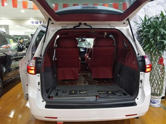 2017款丰田塞纳车舱宽阔,安静,座椅全部采用双色真皮。丰田塞纳它是这些中型MPV车型中唯一一款采用了全轮驱动方式的车型。只有当前轮打滑的时候,才会将动力传递给后轮,从而既降低了油耗又提升车辆的通过性和稳定性。丰田塞纳商务车在配置上增加了DVD、倒车影像、导航、氙气大灯和不锈钢镀铬装饰。