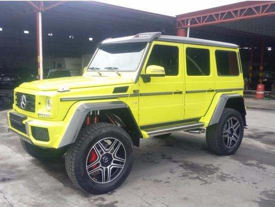 其他方面:奔驰G5004x4不过外观并不低调,前保险杠被分成了三个方形的进气口。轮圈则装上了和AMG款式相近的大五星款式,并采用黑色设计,加上整个黑色的车身,流露出霸气的气质,这套轮圈尺寸达到了22英寸,采用轻质合金打造,配上295/35 R 22的轮胎