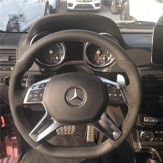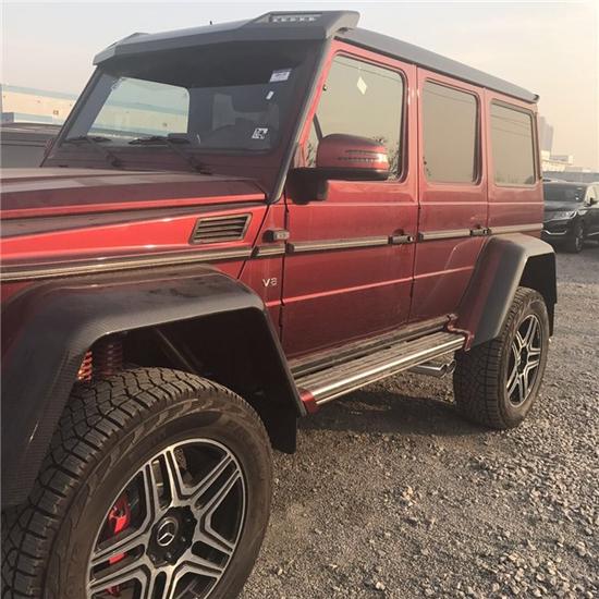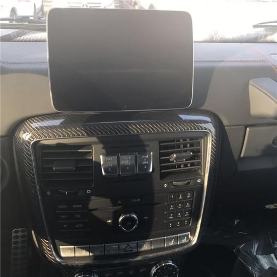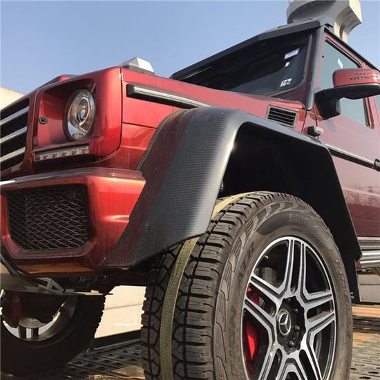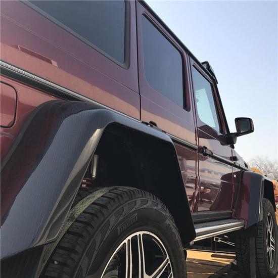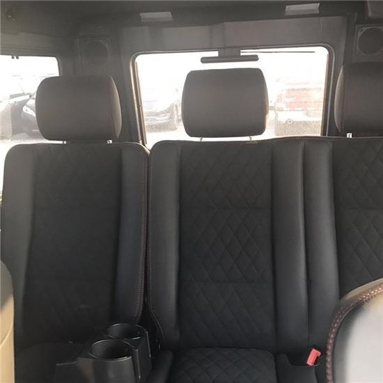 2017款奔驰G500 4x4透过巧手改造,打造出专属BRABUS的性能风味。打开车门,电动遥控踏板会自动伸出,否则以500G 4x4达2300毫米的车高,上车就是一件苦力活。该辆500G 4x4维持了黑色真皮重新包覆中控台、座椅及门板,甚且中控台及排档座皆采用了质感不凡的碳纤维材质饰板。