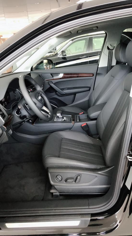 内饰方面:2018款奥迪Q5舒适型中控台上方采用大面积软性材料覆盖,同时与人体能接触部位几乎全采用真皮包裹,在副驾驶前方及中控台下方还应用了原 木材料进行装饰,营造出较强的豪华感。它换装了新样式的方向盘及握感更佳的换档手柄,仪表盘进行了铝制镶边处理,同时采用了最新一代MMI多媒体信息交互 系统。并且,增加了棕色条纹白橡木饰条供消费者选装。三辐式多功能方向盘及仪表盘的样式与奥迪其他车型造型保持一致,方向盘下方的换挡拨片在一定程度上能 增添驾驶乐趣。