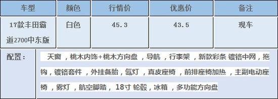 近日,在天津圣恩国际贸易公司了解到2017款中东版丰田霸道2700、4000现车到店,性能怪兽热卖风暴,天津现车销售热惠不散场显尊贵身份,买一辆全能的中大型suv,丰田普拉多 (配置|询价)绝对是首选车型之一,宽敞的空间,够用的动力,可靠的品质和强大的越野能力让丰田普拉多成为全能选手,绝对是家用越野两相宜的一款车型。