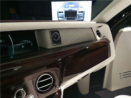 相比外观,全新幻影内饰的改变更为显著。新车首次用一块12.3英寸的液晶仪表替代此前的传统机械式仪表盘,同时也使用了更加现代化的中控人机交互系统,该系统的屏幕可在不用时收起。“艺境藏珍”画廊是全新幻影内饰中增添的最新设计元素,画廊内所有装饰都被一整块钢化玻璃密封,视觉效果美轮美奂。而用户可以对画廊内的装饰、钟表盘以及使用的材质等进行订制。
