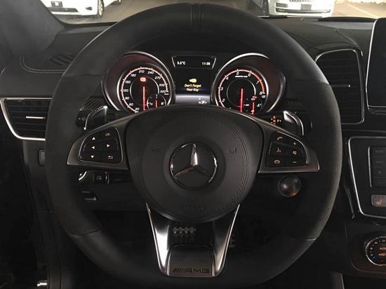 奔驰GLS63换上了家族脸谱,最吸引眼球的是前格栅,超大的三叉星徽和双横格条极具辨识度。三幅多功能方向盘采用皮革与木材结合的材料,并对下方进行了镂空处理,做工细致,缝线极其工整。