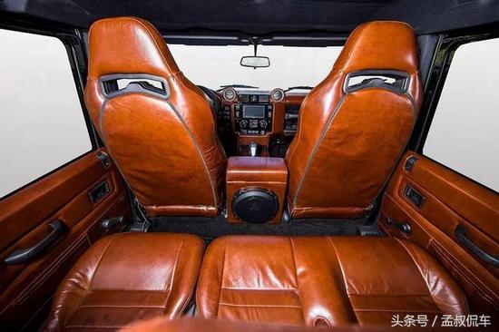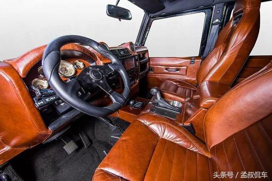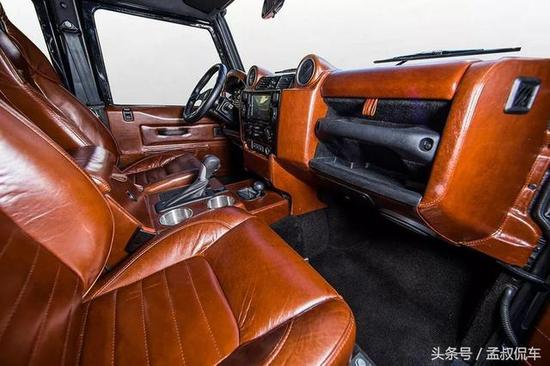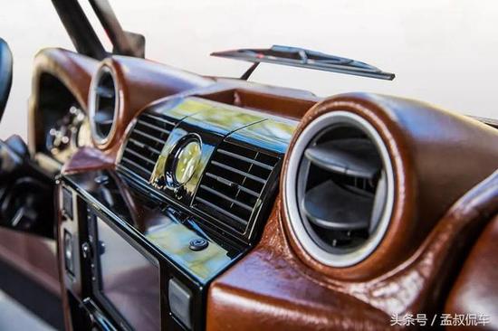 路虎卫士110的中控台设计也秉承了外观方正的样式,完全是简单、实用的代表作,独具风格。East Coast改装厂商准对内饰做了棕色真皮装饰,按键布局合理,在碎石路上颠簸的时候也不怕按错。