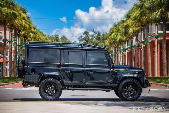 路虎卫士110的外观硬朗,拉风,充满阳刚之气。方方正正的外观造型,在路上有很高的辨识度,散发出纯种越野车特有的魅力和力量感。卫士外表看似厚重,这款的车身加装有防滚架,提高负载能力。