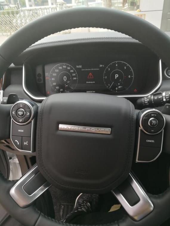 设计方面:路虎揽胜行政版前脸的造型与普通版车型相比没有任何区别,依旧是路虎家族的设计,层次分明,充满了力量感,日间行车灯特殊的造型也大大提高了车型的辨识度。想要控制好这样一台庞然大物,仅仅靠老司机是不够的,还需要一套360度全景倒车影像系统,可以看出前杠上集成了四枚雷达以及两枚摄像头。
