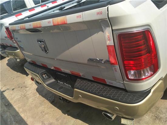 17款道奇公羊长角号新车的眼神中没有透露出一丝的活泼或者神韵,唯一展现出来的只有凶狠。道奇公羊长角号前脸设计一直走激进路线。车头使用了小幅前倾的俯冲式设计思路,意在突显霸气和威猛。刚劲有力表现出皮卡车所具备的硬朗风范,凶悍的进气格栅中央点缀着道奇公羊经典的车标,这是一张熟悉的前脸。采用了双排气,这样大的发动机采用双排气的是很少见的。