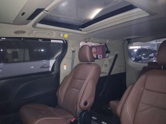 内饰方面:17款丰田塞纳操控区域将大部分控制按钮收纳其中,便于操作,中控台上路设置了前排空调控制及部分车辆功能按键区域划分明确,操作起来很顺手,整体很豪华精致,这也是丰田多年来的设计坚持!而且造型很有科技感。音响系统使用10喇叭的JBL,多碟DVD换碟机AUX+USB多种音源让你畅享旅途中的惬意。丰田塞纳加规版有着出色的公路驾驶性和舒适性,标配了6气囊和ABS、ESP等安全配置,在驾乘中多一份舒心。座椅方面仍旧有四种材料的内饰供选择,普通织物,高级易清洗织物,普通皮革和高级真皮。当然这些材用在不同的车型上,低配的车型仍然选择不了更好的材料。这样的特点似乎是营销的必须策略。