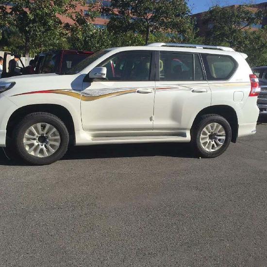 配置:霸道2700 17款 TXL 巴林版 天窗 后挂 两气囊 车载冰箱 DVD 拖钩 VSC车身稳定系统 前后雾灯 珍珠漆 双区自动空调 18寸铝合金轮毂 黑色脚踏板 电动折叠后视镜 订速巡航 多功能方向盘 后四电眼 前小杠 大屏 车身防擦条 胎压监测 镀铬前中网 车身同色门把手 高位刹车灯 镀铬尾喉 尾翼 一键升窗。此款车型为本公司最新到店车型,九月份报关,生产日期最新。