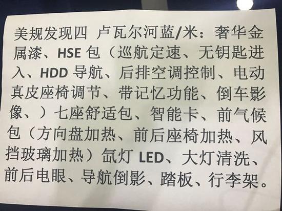卢瓦尔河蓝/米 美规发现四卢瓦尔河蓝米:奢华金属漆、七座舒适包、智能卡、前气候包(方向盘加热、前后座椅加热、风挡玻璃加热)氙灯LED、大灯清洗、前后电眼、导航倒影、踏板、行李架。