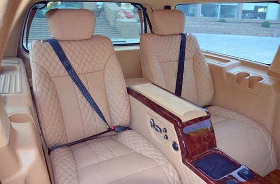 顶级Nappa 打孔真皮航空座椅(通风+加热+气动按摩+腿托);舒适度比丰田埃尔法有过之而无不及。此外还配备豪华多功能影视墙,整车私密窗帘、车内辅助充电系统、进口钢琴烤漆实木饰件、电动酒柜、隐藏式储物格、镀铬拉手、进口电动隔帘、仪容化妆镜、游艇级豪华柚木地板;