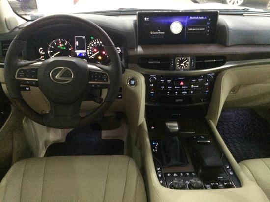 内饰方面:雷克萨斯LX570一贯的品质却保证了内饰的大气与奢华,大量桃木与真皮材质的运用洋溢着温馨与古典的氛围,中控台及仪表台上方的材质为软性真皮包裹,材质优越,中控台按键布局简洁,按键及按钮手感好,空调区域布局伊人,车内空间宽阔,是您最好的选择。