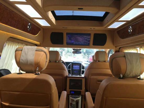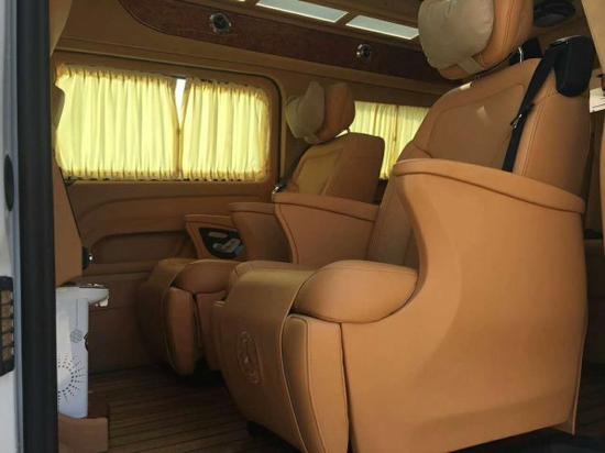 奔驰威霆商务车改装商务房车选装配置:航空座椅2个、第三排沙发床、实木地板(柚木地板)、整车包皮(可选翻毛皮)、操控台改装、航空折叠办工桌、满天星灯光(可选迈巴赫灯光)、窗帘、脚踏板、迎宾踏板、整车镀铬、吸顶电视、导航大屏等等